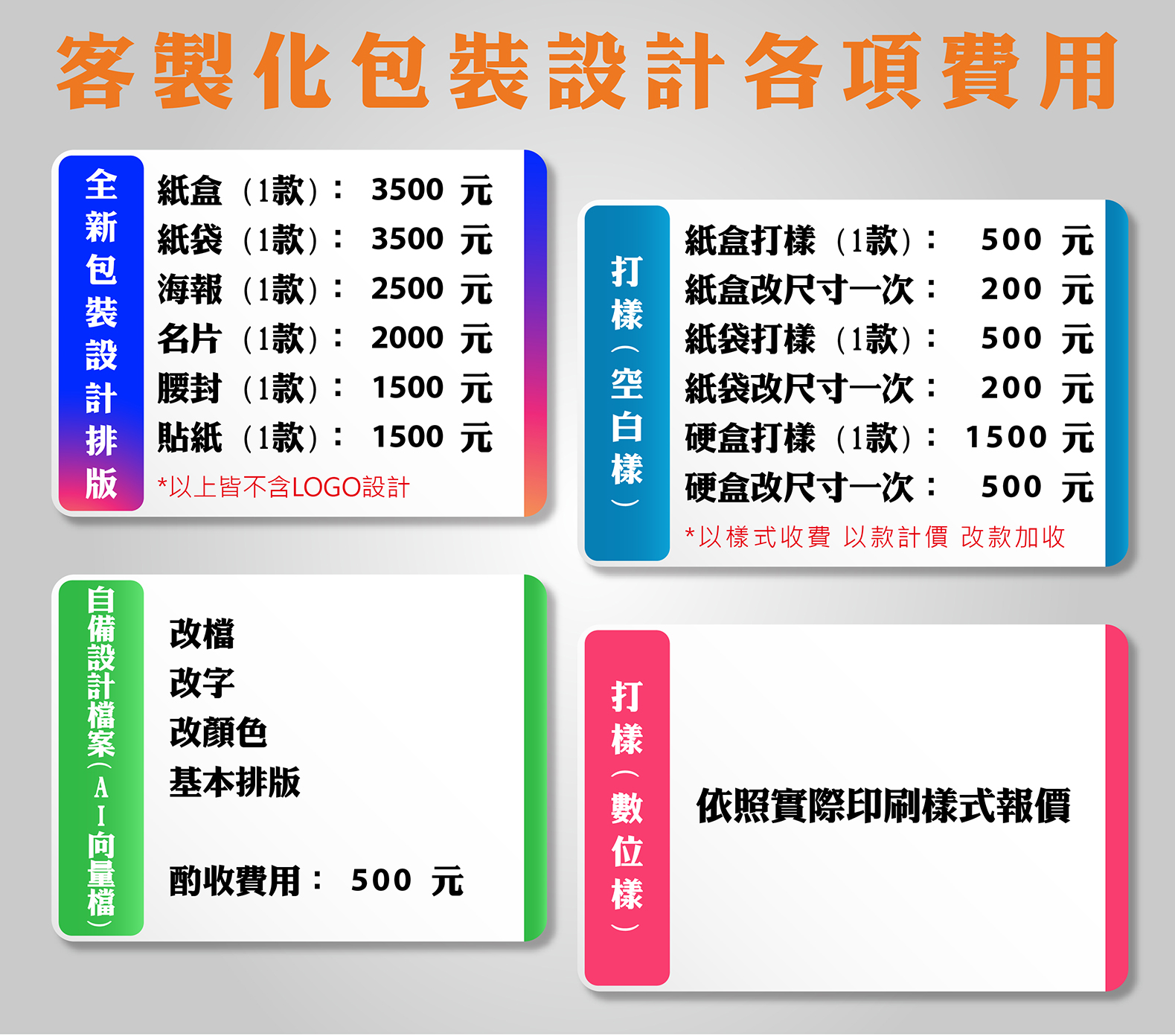各類設計排版費用以實際估價為主,此價目表為參考。
